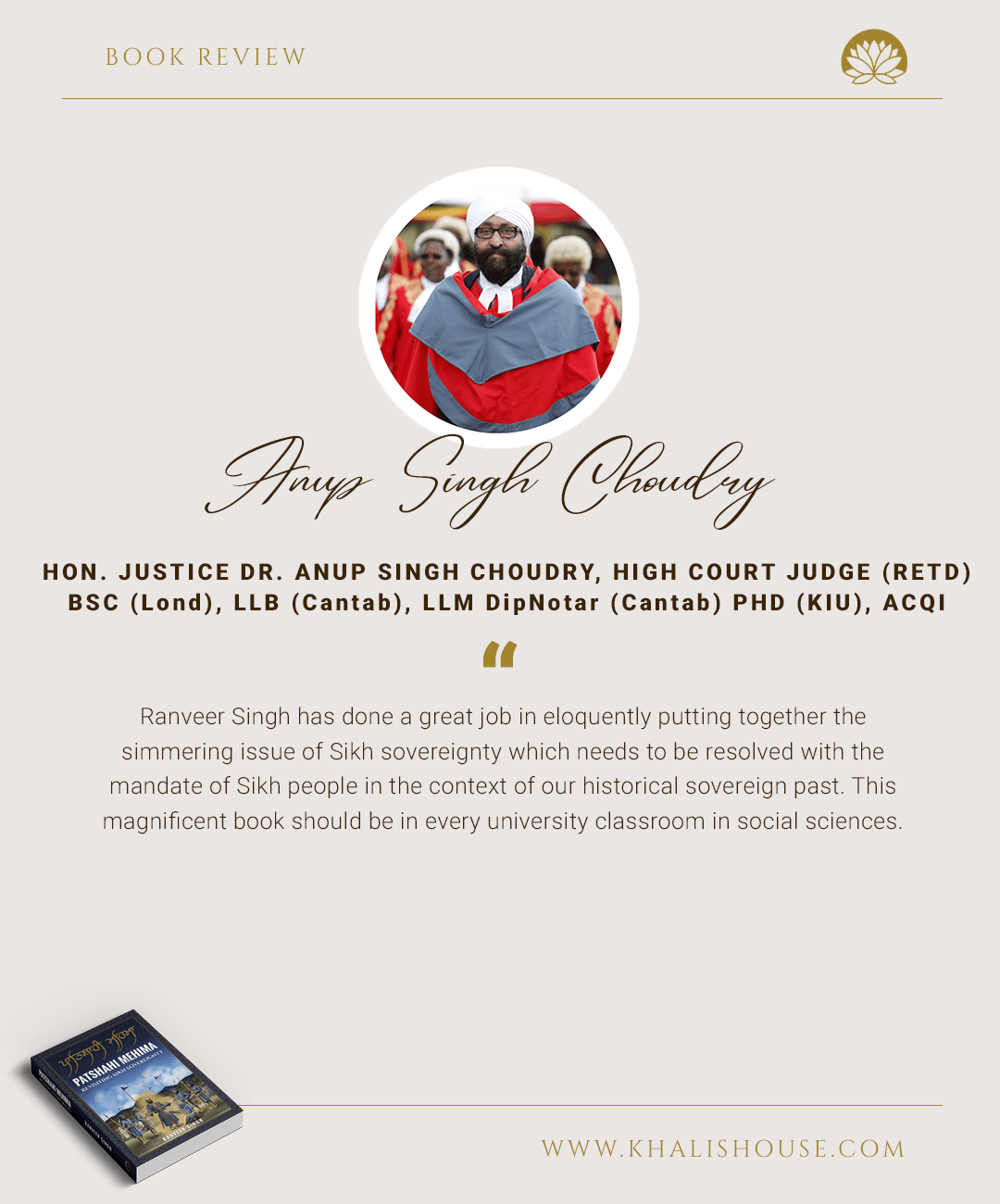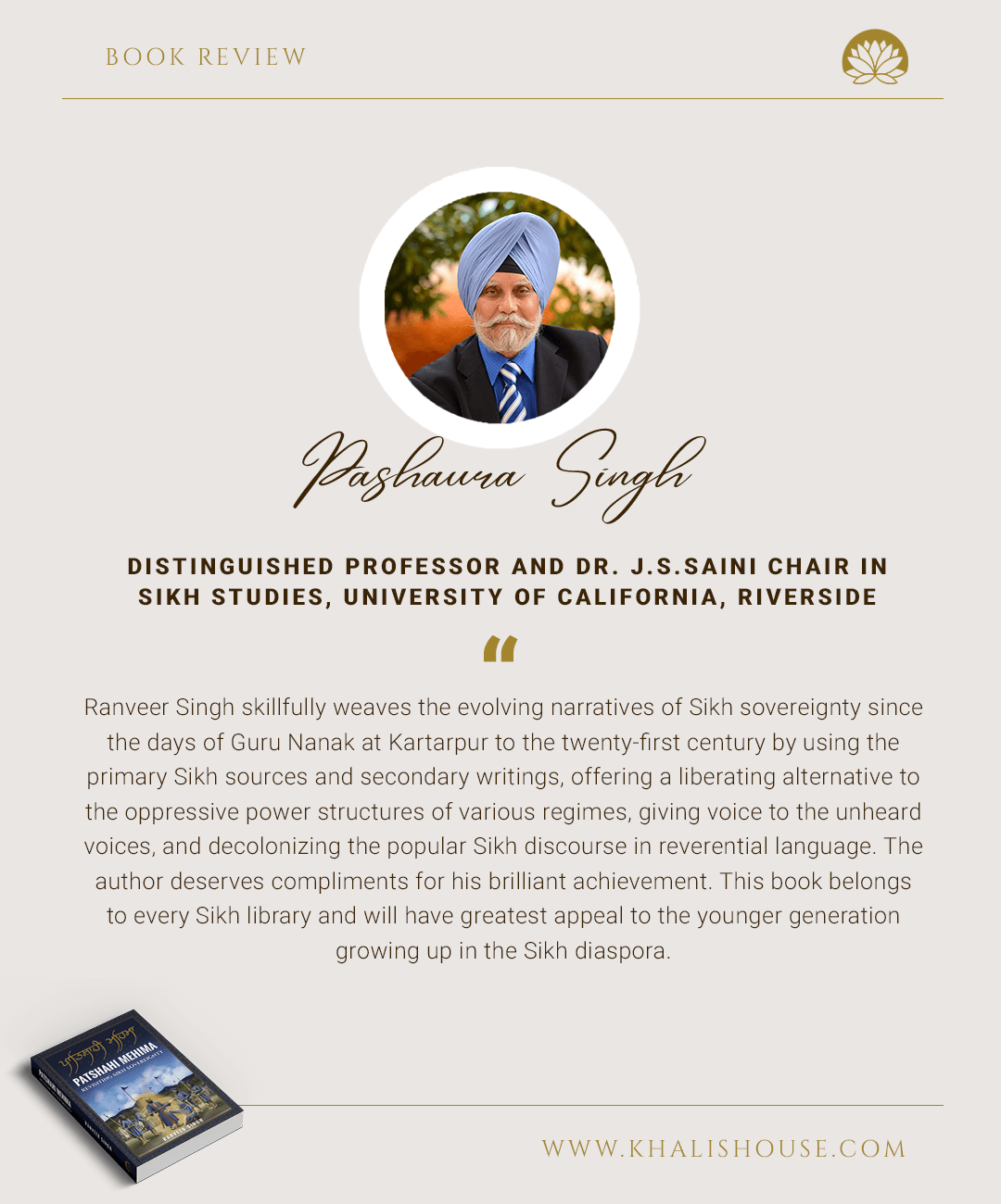 'Patshahi Mehima - Revisiting Sikh Sovereignty' (Nov, 2021) is a comprehensive non-fiction work on the Sikhs, focusing on the revolutionary rise of the Sikh Panth. The book has received excellent praise from distinguished professors, in the field of Sikh studies, Economy and History.